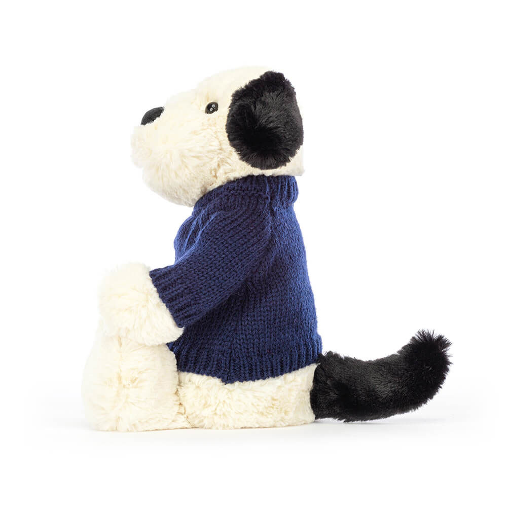 Bashful Black & Cream Puppy with Personalised Navy Jumper